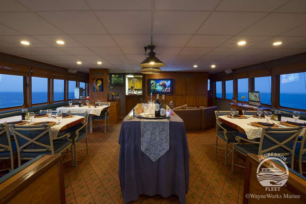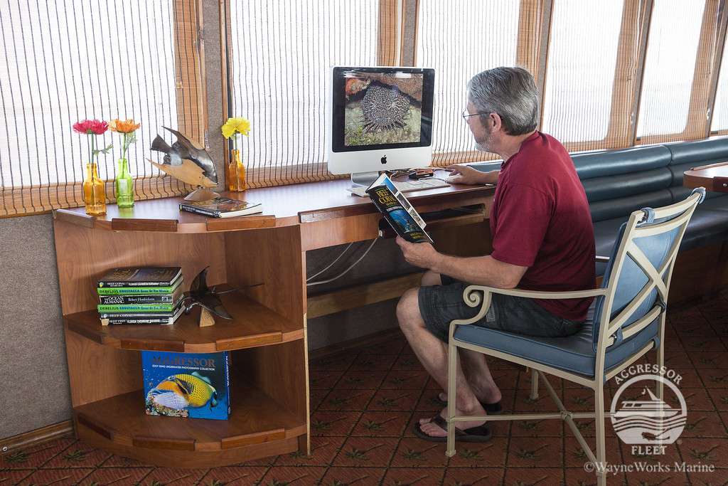 На борту Belize Aggressor IV гости смогут расслабиться и отдохнуть после погружений в уютном салоне. Подводные фотографы смогут посмтреть отснятые за день фотографии и привести в порядок фото технику