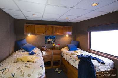 На нижней палубе находится каюта Deluxe с односпальными кроватями. Ещё 7 кают Deluxe расположены на верхней палубе. Там же находятся и 2 каюты Master Stateroom с двуспальными кроватями. Во всех каютах есть саузел, климат контроль, фен и шкаф.