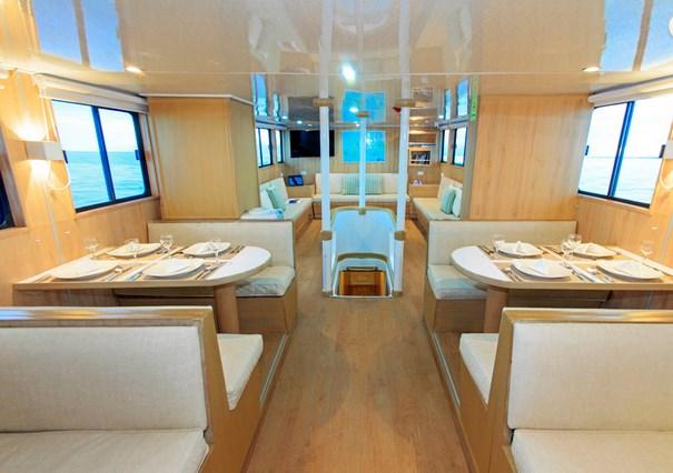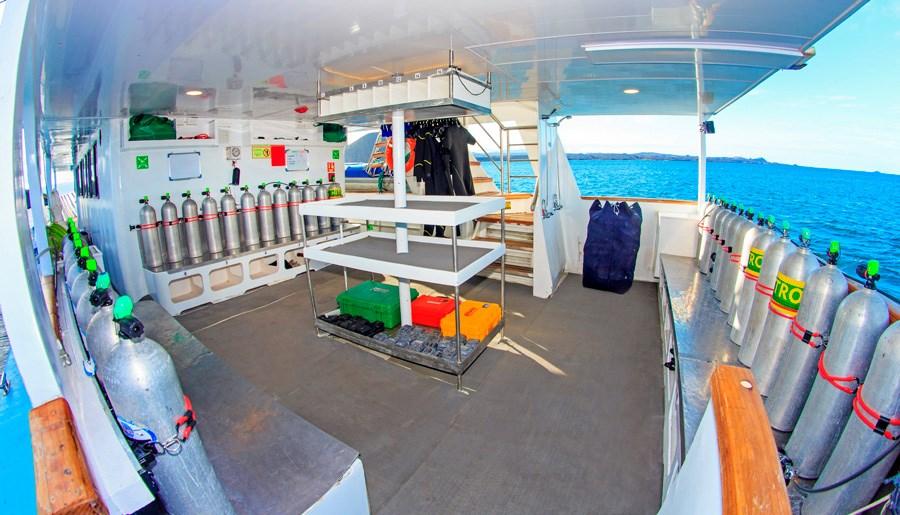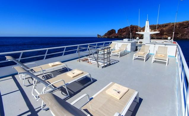 На борту Galapagos Aqua просторная обеденная зона, уютная библиотека и салон с телевизором, DVD, проектором и ноутбуком. Провести время между погружениями, расслабиться и насладиться окружающей природой можно в салоне на открытом воздухе или сан-дэке с удобными шезлонгами.
