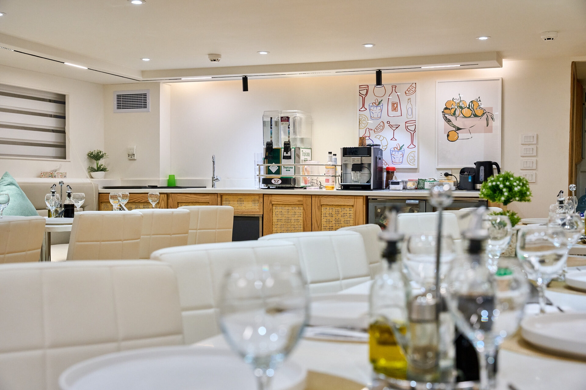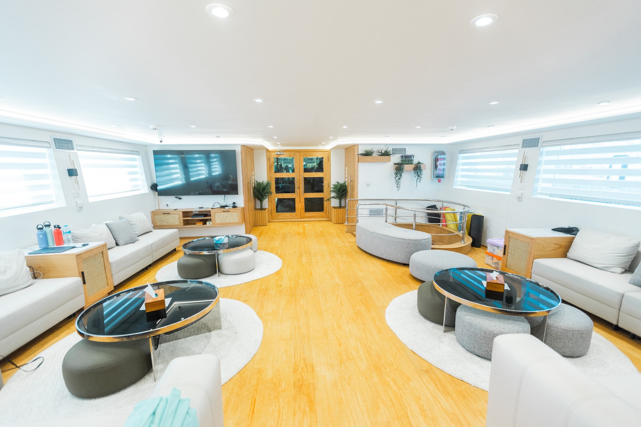 Салон і їдальня створені для відпочинку між зануреннями. Прийом їжі проходить у кондиціонованому приміщенні зі зручними місцями для сидіння. Додаткові зони для релаксу розташовані на верхній і сонячній палубах, де поєднуються тінь і відкриті сонячні простори з шезлонгами.