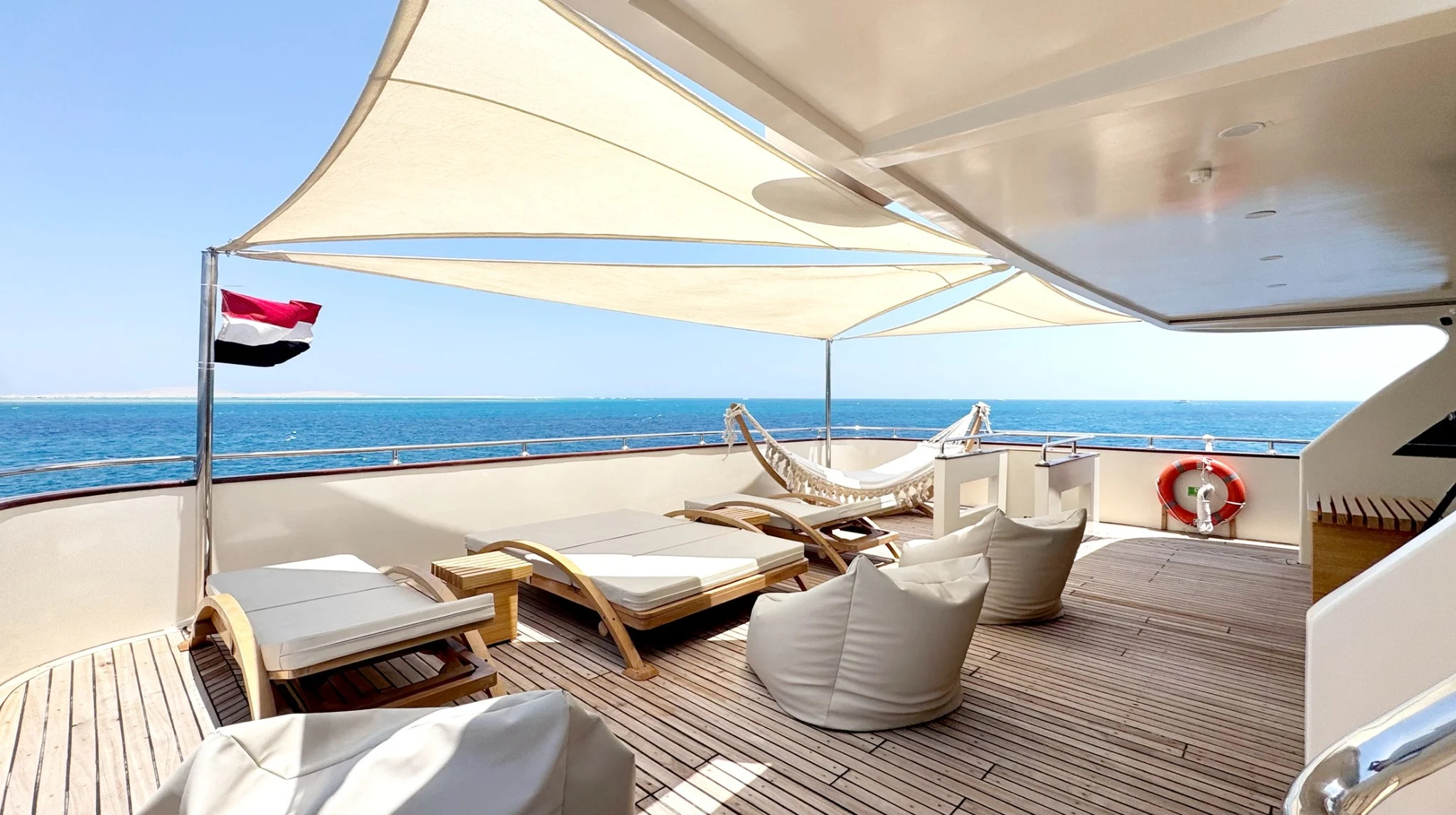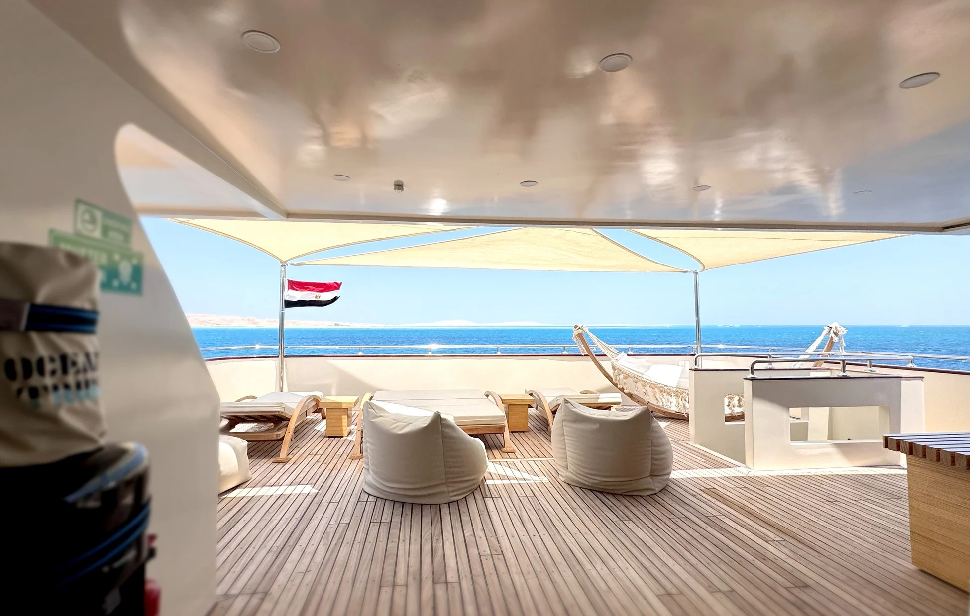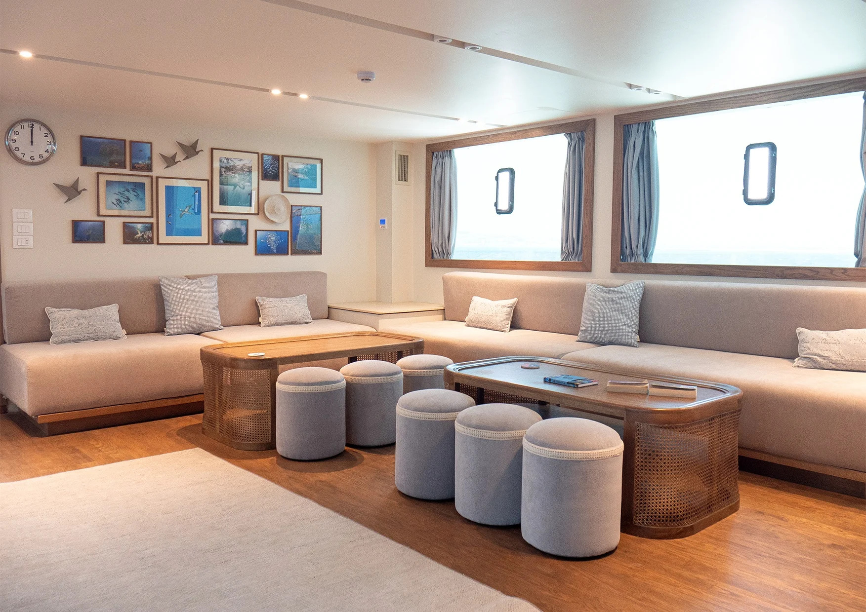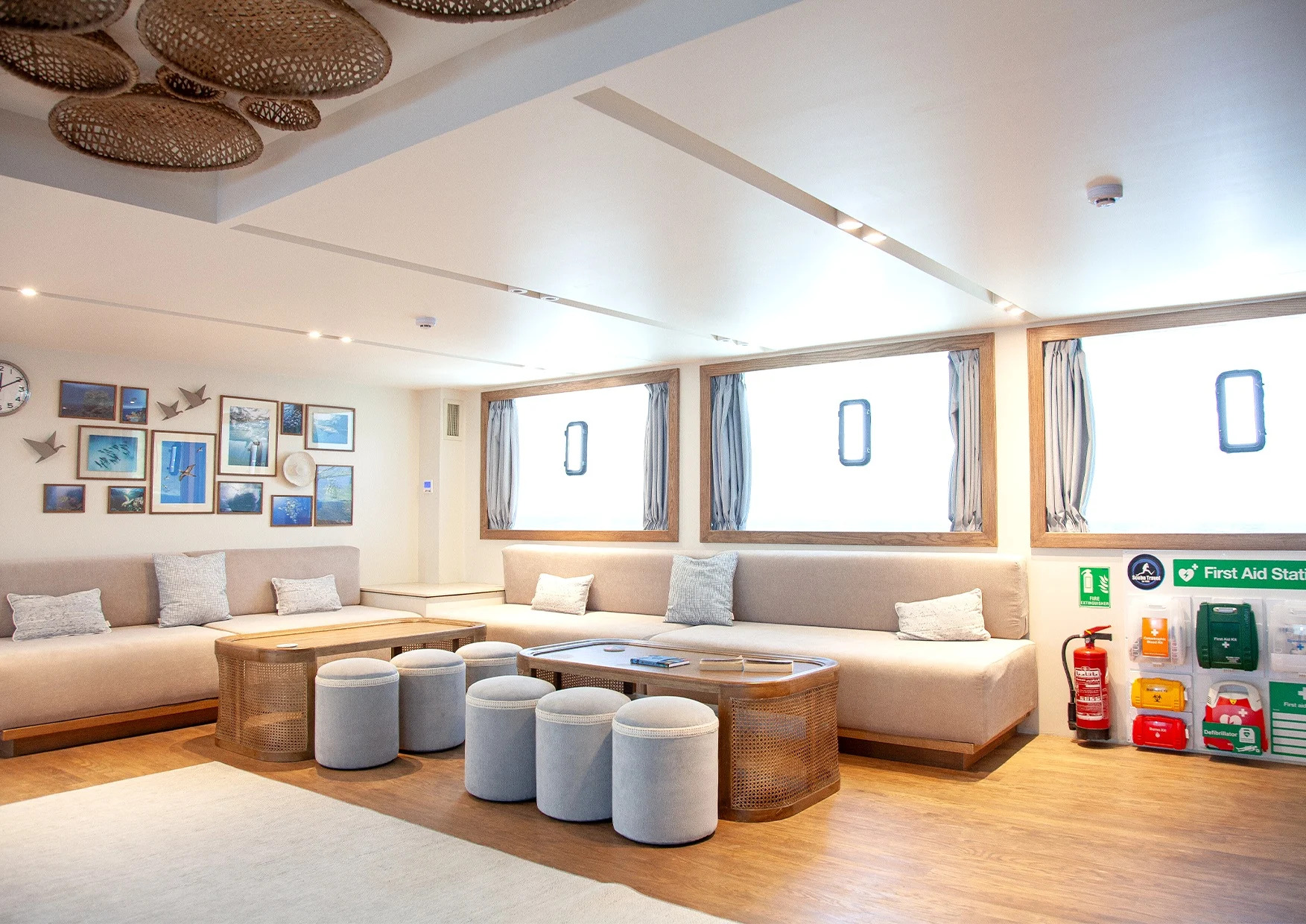 Для відпочинку між зануреннями передбачено чотири окремі відкриті лаунж-зони на верхній і флай-палубах. Це комфортні простори для читання, релаксу або споглядання заходу сонця над Червоним морем. Wi-Fi доступний за наявності покриття. У барі можна придбати місцеві та міжнародні алкогольні напої. На окремих маршрутах, залежно від погодних умов і розкладу, організовуються пляжні BBQ.