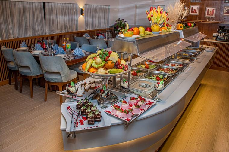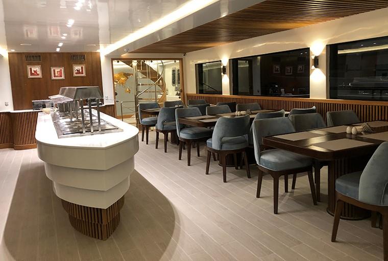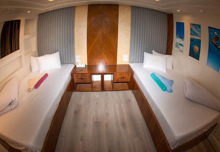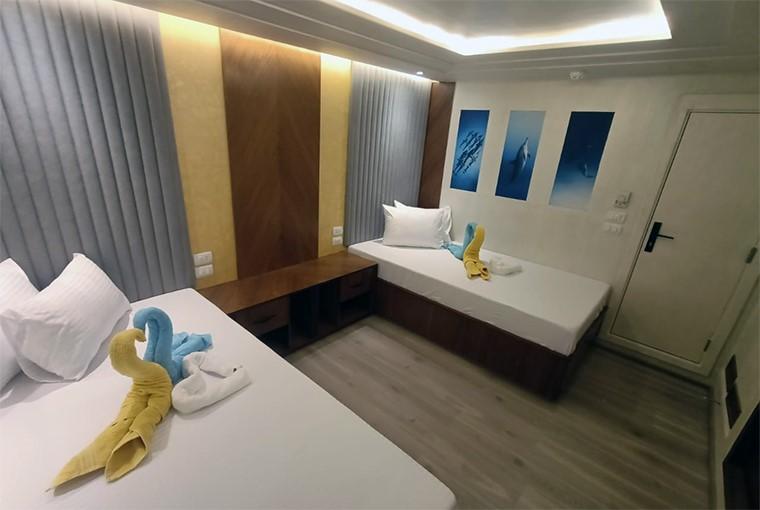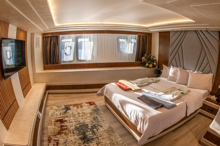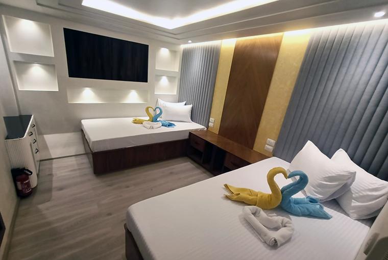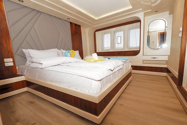 У кожній каюті є ванна кімната та мінібар з кондиціонером з індивідуальним керуванням. Панорамний вид на море відкривається з дуже просторого внутрішнього салону з телевізором, музичною системою та DVD-програвачем. Харчування здійснюється за системою "шведський стіл" в обідній зоні, а на сан-деку є шезлонги та достатньо місця для сонячних ванн або відпочинку в зручних затінених місцях.