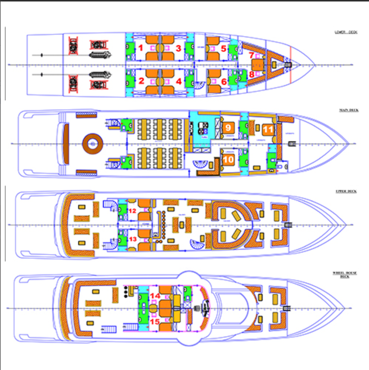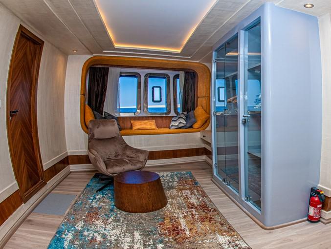 Seawolf Steel — це мрія любителів дайвінгу: вона має дайв-дек із місцями для підзарядки, обладнаний туалетами та гарячим душем для зручної підготовки до кожного занурення. Nitrox пропонується безплатно для сертифікованих дайверів, які шукають більше часу під водою. Вбудована супутникова система ENOS і система порятунку гарантують безпеку, а два моторизовані тендери забезпечують комфортне транспортування до найближчих місць занурення.