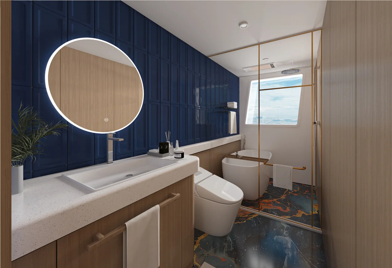 На нижній палубі за запитом можуть бути додані 1-3 додаткові каюти, що дає можливість гнучко формувати склад групи. Усі каюти обладнані кондиціонуванням і зручностями для тривалого перебування.