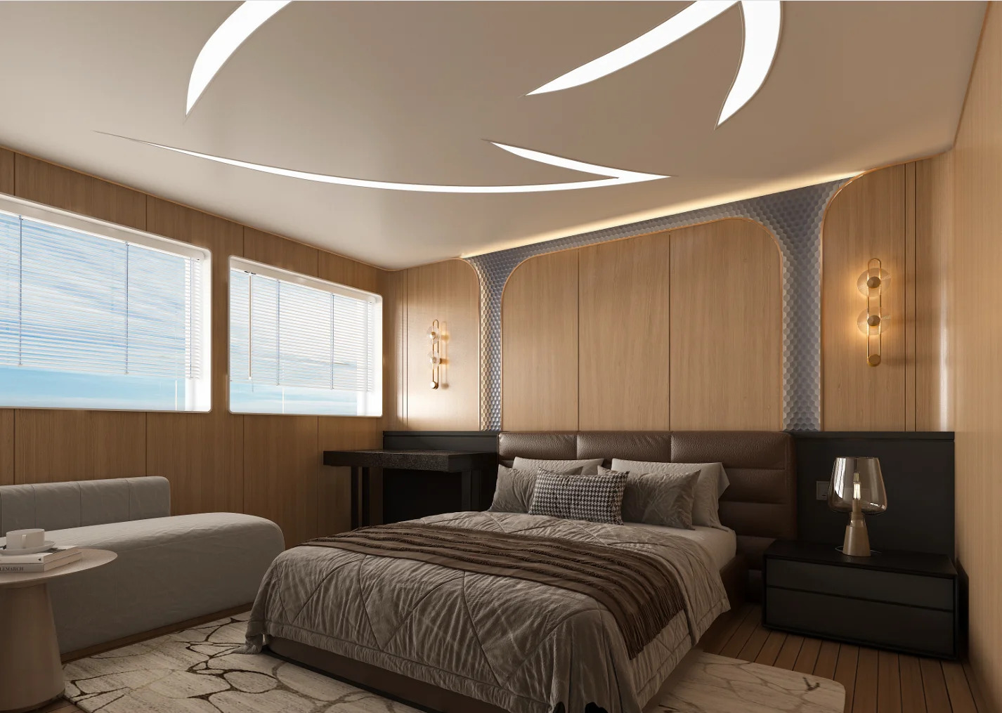 На верхній палубі розташовані вісім Deluxe-кают із великими ілюмінаторами та конфігурацією twin або double, а також Master-каюта з панорамними вікнами, приватним балконом, диваном і окремою кімнатою для дитини.