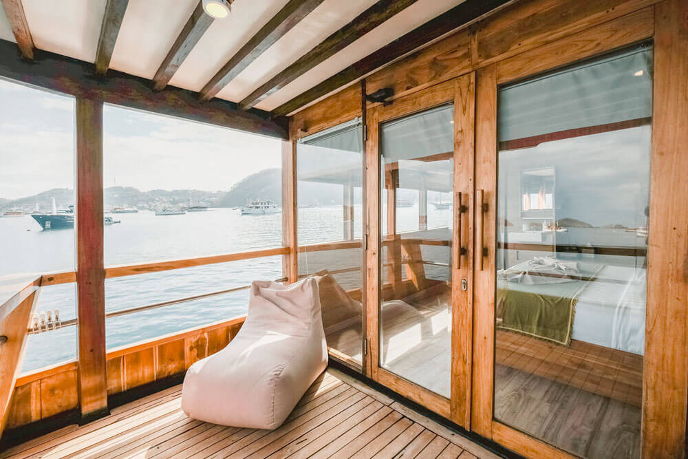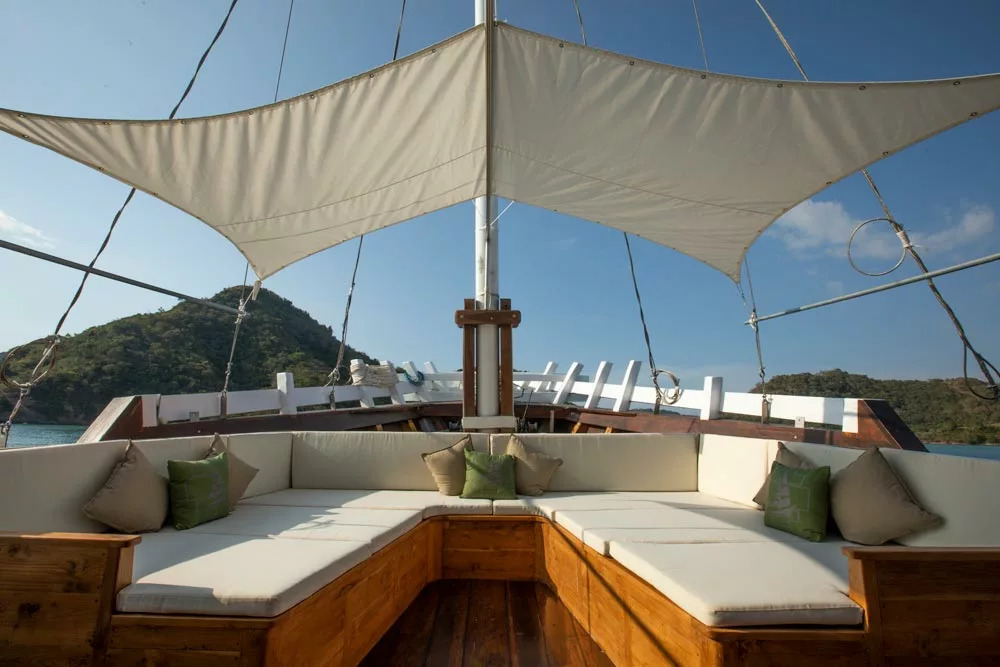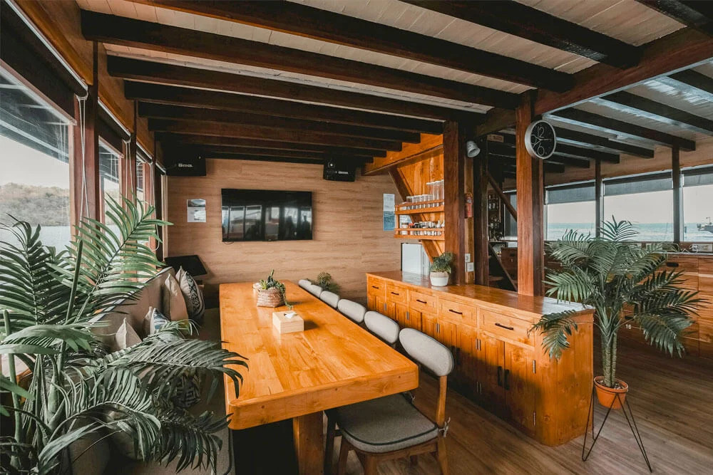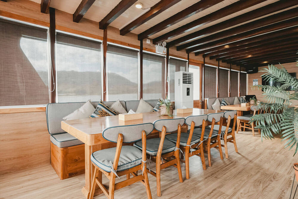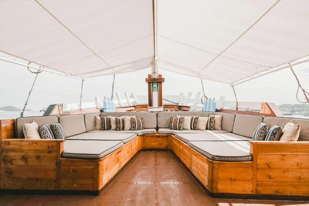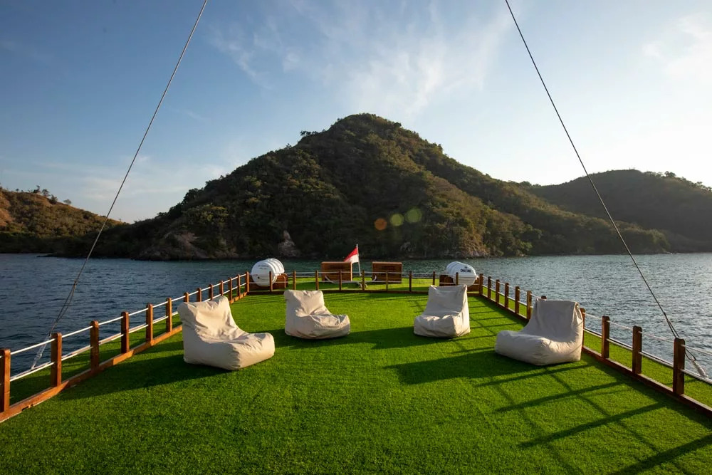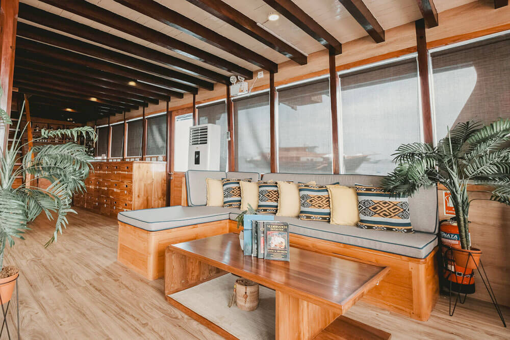 У кондиціонованому салоні можна насолодитися смачними стравами, прослухати брифінги перед зануреннями або розслабитися з коктейлем, переглядаючи фільм на великому екрані. Гостям також доступні послуги масажу та пральня. Просторий сан-дек - чудове місце для відпочинку між зануреннями або релаксу під лагідним індонезійським сонцем.