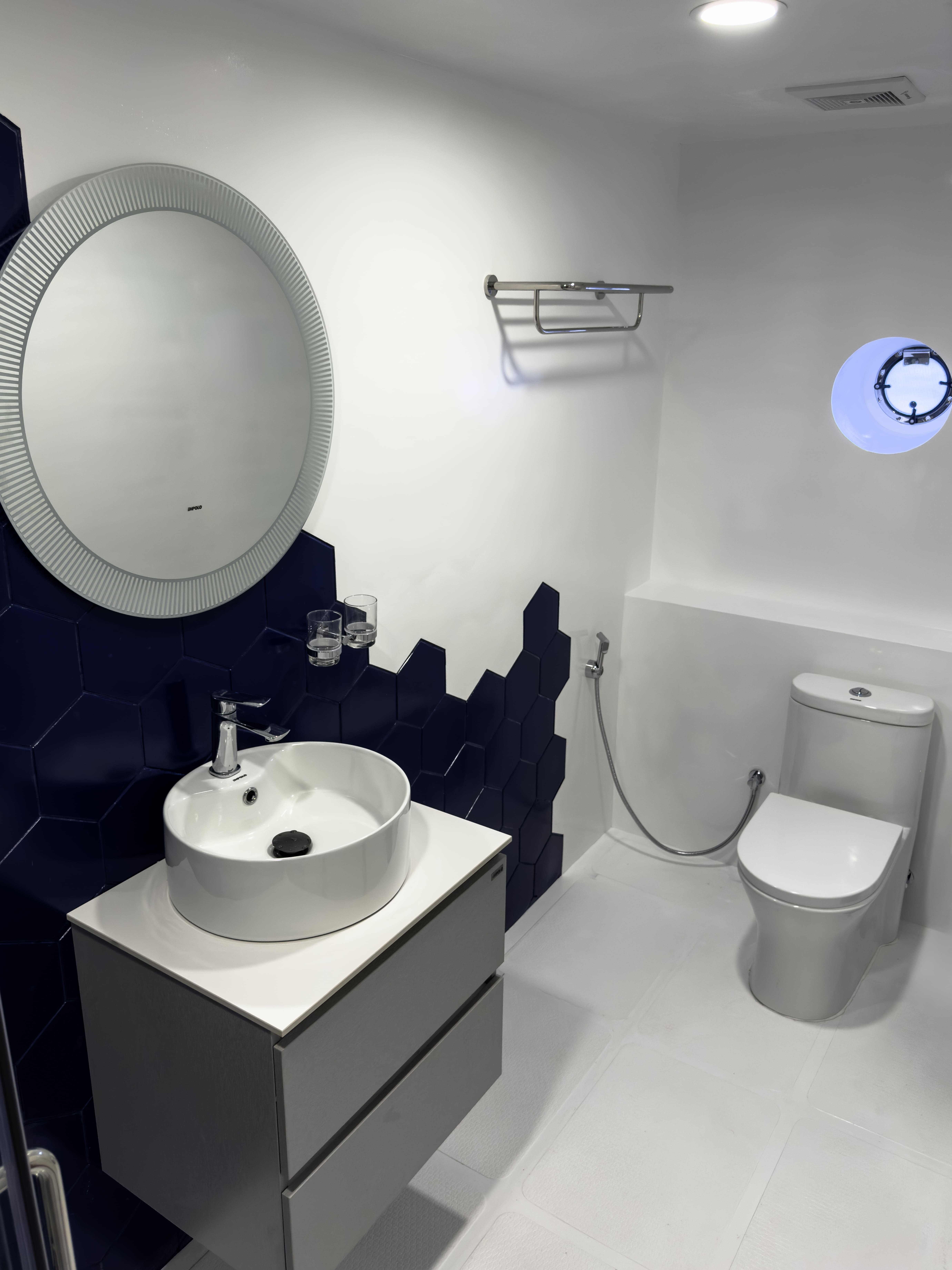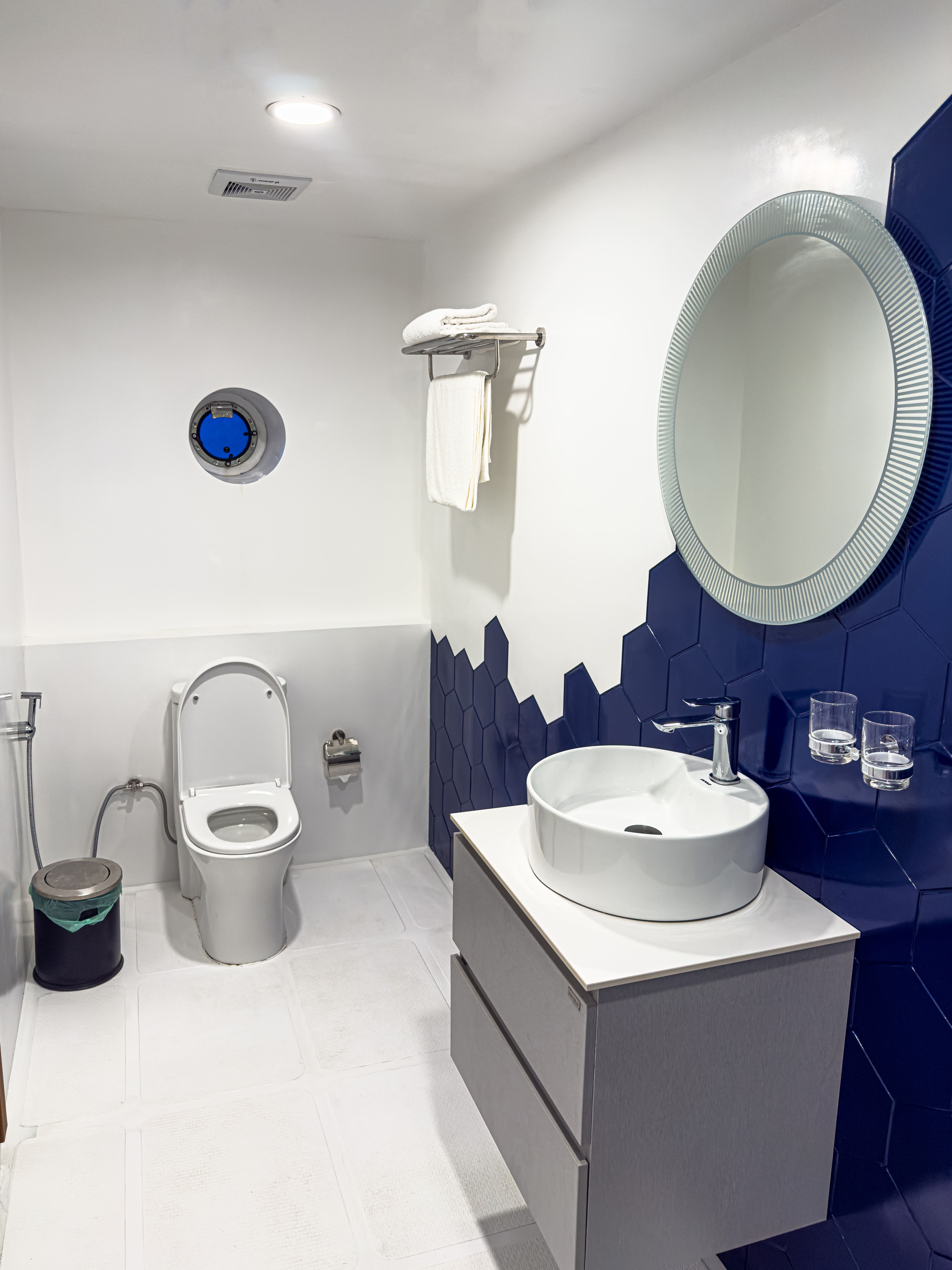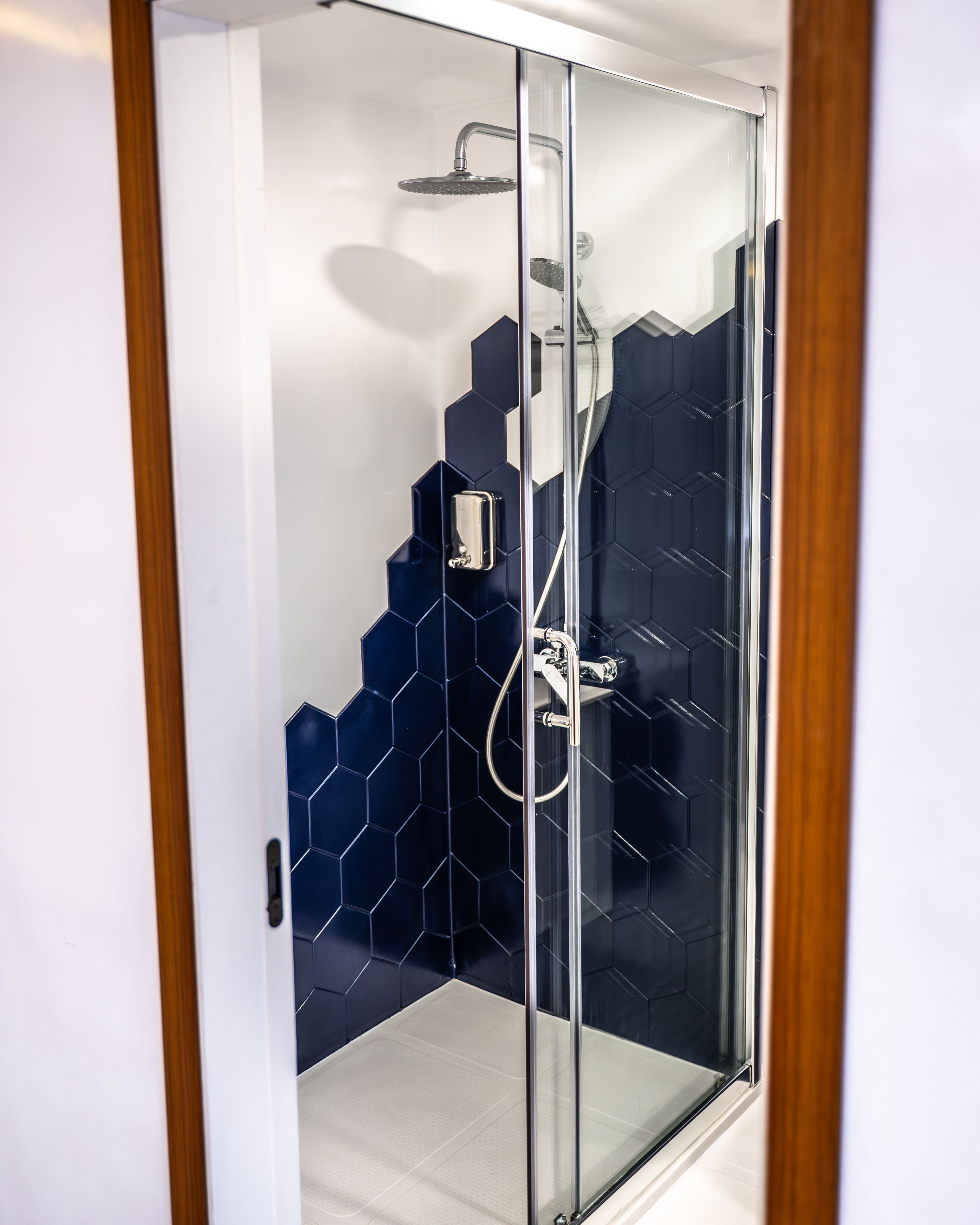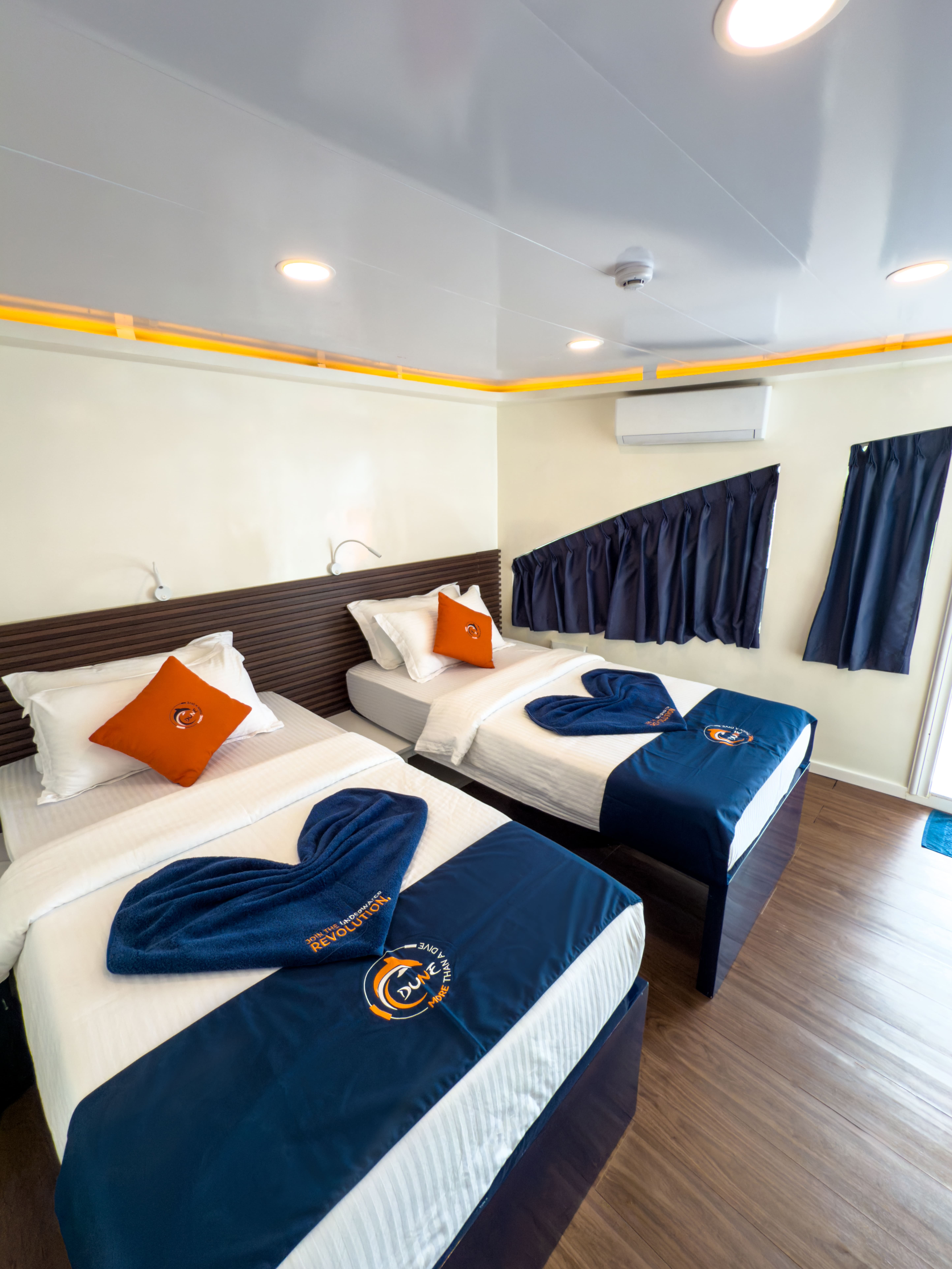 Кожна каюта обладнана окремою ванною кімнатою, індивідуальним клімат-контролем та місткими шафами для особистих речей.