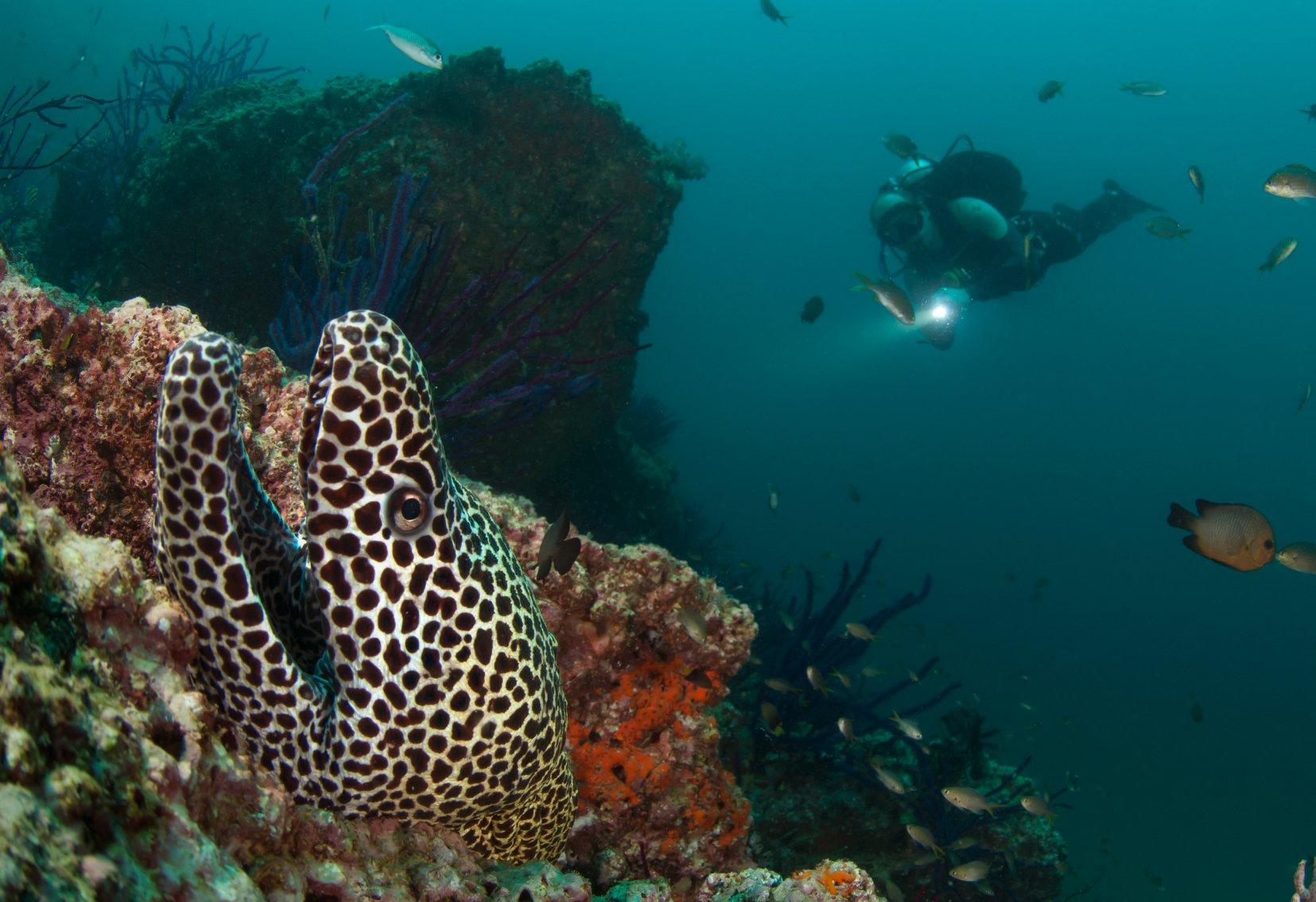 Оман - удивительная страна, которая вызывает непреодолимое желание посетить ее благодаря своей живописной природе и арабской самобытности. Страна долгое время была закрыта для посещений иностранцами, поэтому дайвинг в Омане отличается уникальными подводными пейзажами, которых практически не коснулась рука цивилизации. Подводный мир настолько не исследован, что в любое время может быть обнаружен новый дайв-сайт или затонувший объект. Дайвинг-сафари на островах Халланьят предлагает отличную возможность для дайвинга на юго-восточном побережье Омана. Во время погружений вас ждут нетронутые кораллы, гигантские манты, груперы и кашалоты. Очень часто можно увидеть большие стайки дельфинов и зеленых черепах. Но изюминкой дайвинга здесь все таки остаются горбатые киты. Наблюдение за китами может стать одним из самых ярких впечатлений в вашей жизни.